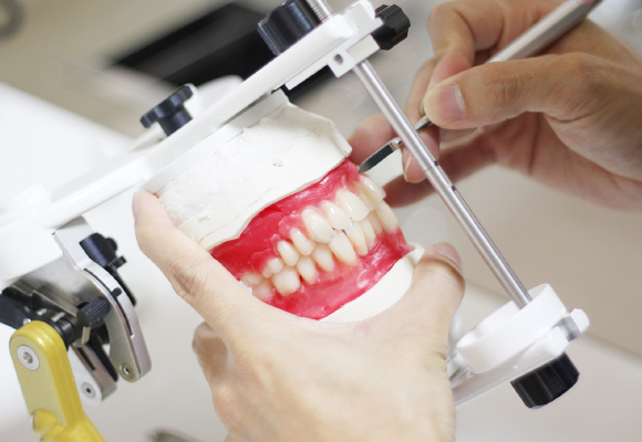 一人ひとりにぴったりの入れ歯を作る計画を立てます。そして、今までの合わない入れ歯の癖を取り除くリハビリを行いながら、最新の設備・技術・材料を駆使して、専属の歯科技工士と共に最適な入れ歯を作りあげていきます。